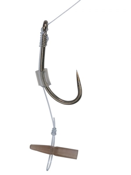 Haczyk gotowy do użycia , posiada już zawiązany przypon o długości 8 cm oraz włos do którego zawiązany jest stoper pushstops - quickstops do pelletu,kukurydzy