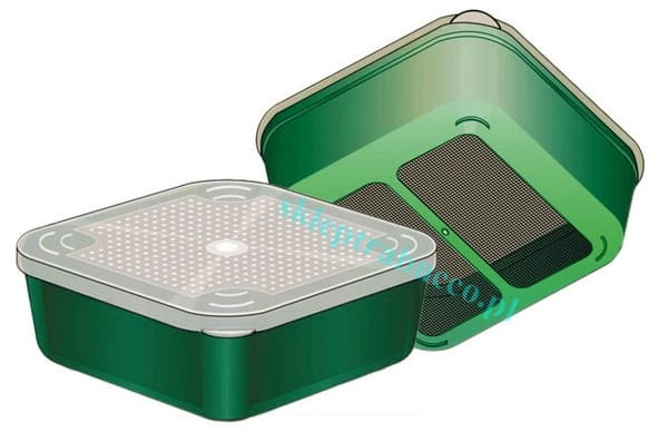Pudełko stonfo wykonane z wysokiej jakości miękkiego plastiku,odporne na odszktałcenia.Pokrywka dziurkowana ,idealne do przechowywania przynęt.Wielkość 1,2l , pudełko posiada w dnie siatkę co pozwala utrzymywać ochotkę w dobrej kondycji poprzez łatwą podmianę wody.