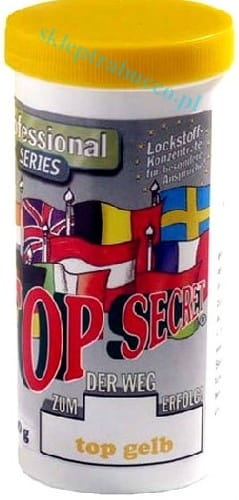 Jedne z najlepszych w Europie silnych atraktorów wykorzystywanych w wędkarstwie wyczynowym, Top secret schwarz - to specjalna seria,która charakteryzje się szczególną skutecznością na większości łowisk . Silnie pobudza do żerowania , pobudza trawienie,jest 30 razy mocniejszy od innych atraktorów.