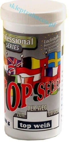Jedne z najlepszych w Europie silnych atraktorów wykorzystywanych w wędkarstwie wyczynowym, Top secret schwarz - to specjalna seria,która charakteryzje się szczególną skutecznością na większości łowisk . Silnie pobudza do żerowania , pobudza trawienie,jest 30 razy mocniejszy od innych atraktorów.