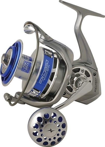 TRABUCCO Exceed Sw Spin - najnowsze kołowrotki ze stajni włochów - korpus wykonany ze szczotkowanego aluminium lekki ,a jednocześnie twardy jak stal , model 4000 waży mniej niż 500gr ,a jest w stanie pomieścić 220m żyłki 0,40. Kołowrotki te charakteryzują się antyrewersem w każdym położeniu . Korba i gałka wykonane z kutego aluminium. Doskonały ,mocny hamulec,który spełni oczekiwania najbardziej ambitnych wędkarzy ( MAX Drag 20 kg !!! ) Trzymając ten kołowrotek mamy wrażenie że to inna technologia XXI wieku.