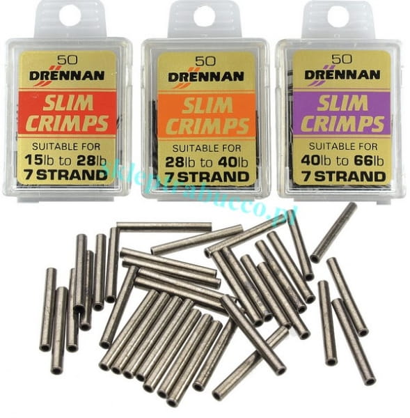 Tuleje do zaciskania linek stalowych angielskiej firmy Drennan. 3 wielkości , wytrzymałości do wyboru.